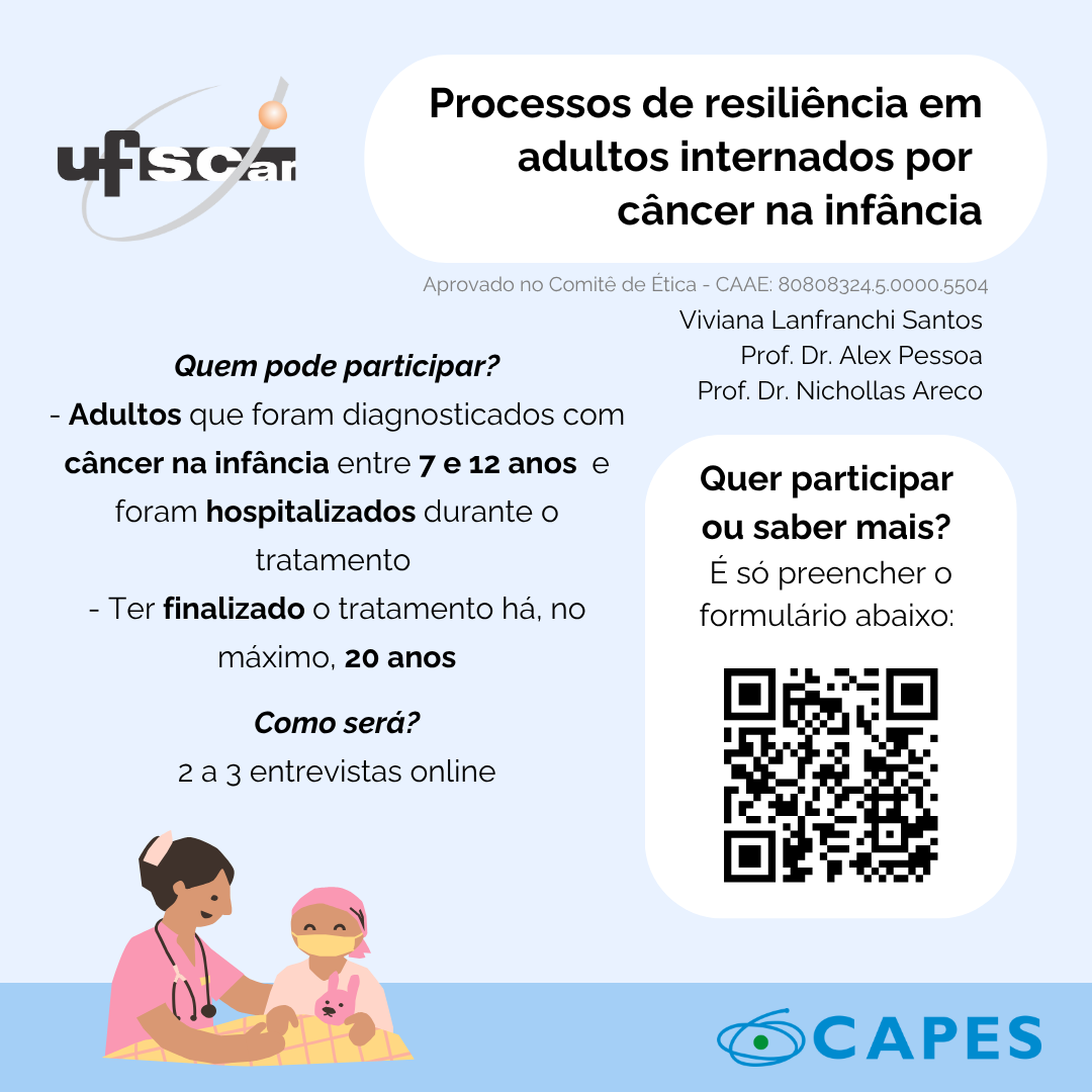 O trabalho tem orientação do professor Alex Sandro Gomes Pessoa, do Departamento de Psicologia (DPsi) da UFSCar, e coorientação do psicólogo do Setor de Oncologia e Hematologia Pediátrica do Hospital das Clínicas da Faculdade de Medicina de Ribeirão Preto da Universidade de São Paulo (USP), Nichollas Martins Areco. Projeto aprovado pelo Comitê de Ética em Pesquisa da UFSCar (CAAE: 80808324.5.0000.5504).